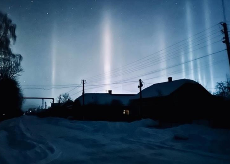 Сильний мороз. У повітрі танцюють мікроскопічні кристали льоду, які, немов повстанці, відмовляються підкоритися природному порядку. Вони відбивають вогні вуличних ліхтарів, створюючи вертикальні колони світла. Знову,